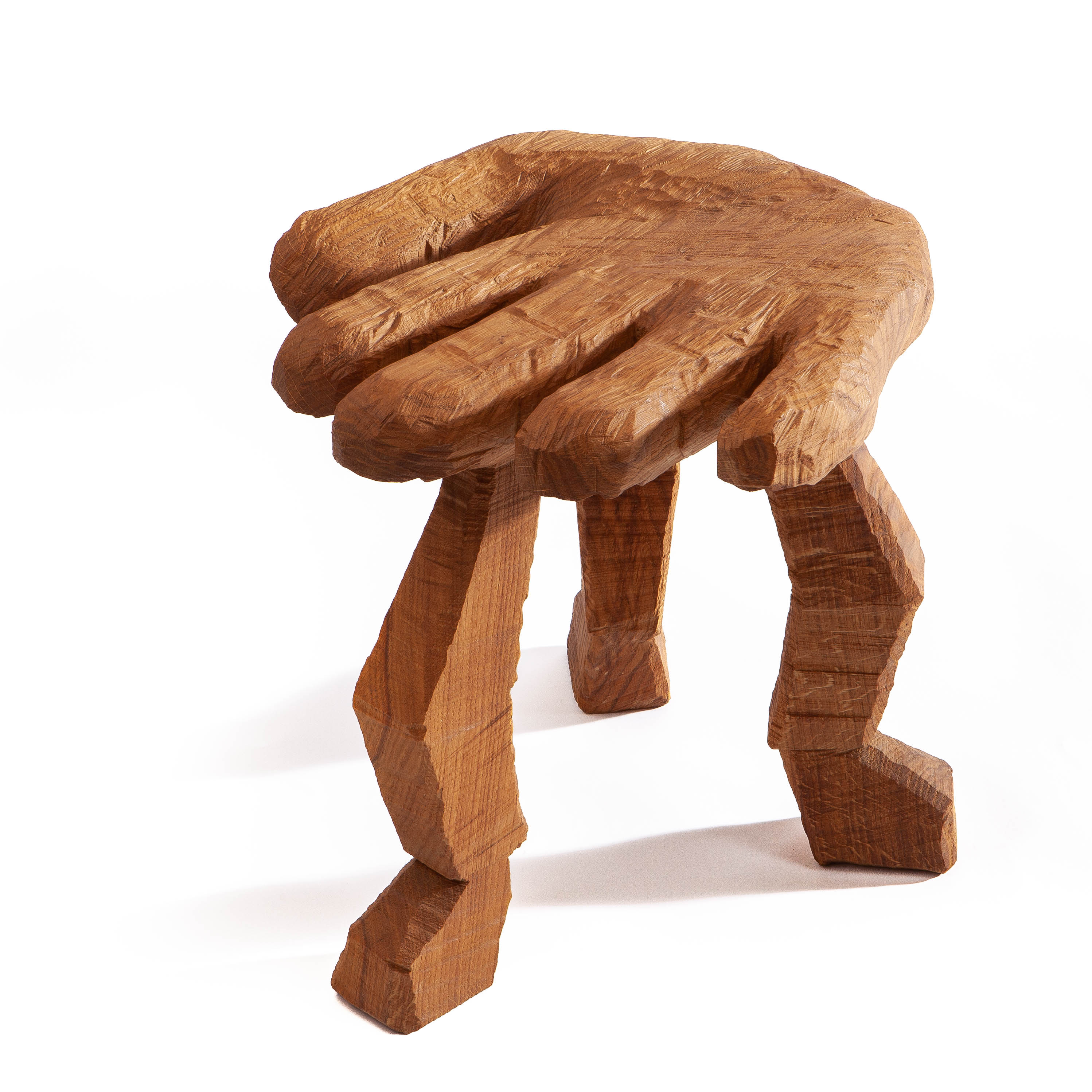 sculpted but stout chainsaw carved stool. designed with potential outdoor use in mind.